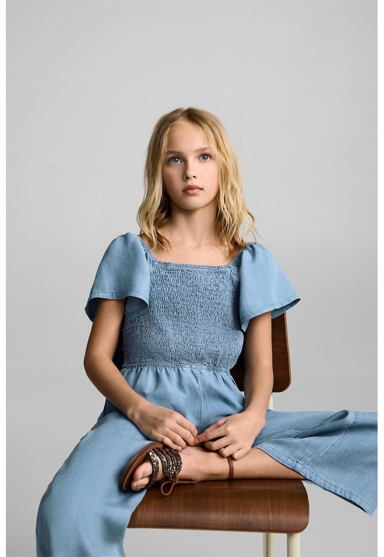 Caracteristici Culoare: albastru lavanda Material: lyocell Stil: casual Imprimeu: uni Croiala: regular fit Decolteu: patrat Maneci: evazate Lungime maneca: maneca scurta Talie: cu insertie elastica Sistem inchidere: nasturi Colectie: primavara