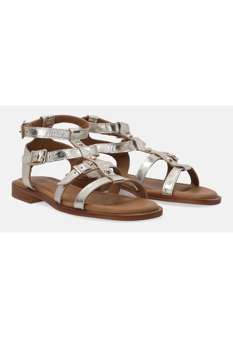Caracteristici Tip: cu talpa joasa Culoare: auriu Material: piele naturala Imprimeu: uni Stil: casual Tip talpa: plata Culoare elemente metalice: auriu Detalii: aspect metalizat Sistem inchidere: catarama Compozitie Partea superioara: piele naturala Material interior: piele naturala Material talpa: alte materiale