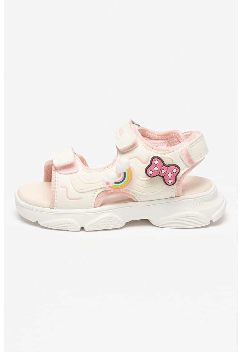 - roz Imprimeu: uni Material: piele ecologica Sistem inchidere: velcro Tip talpa: plata Detalii: pandantive intersanjabile Compozitie Partea superioara: alte materiale Material interior: piele Material talpa: alte materiale