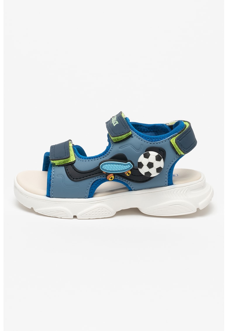 - albastru petrol Imprimeu: grafic Material: sintetic Sistem inchidere: velcro Tip talpa: plata Detalii: pandantive intersanjabile Compozitie Partea superioara: alte materiale Material interior: textil Material talpa: alte materiale