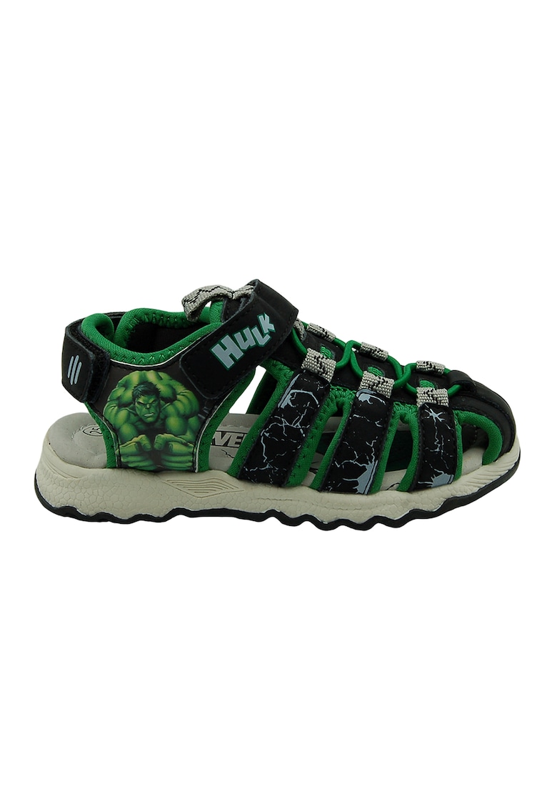 - negru Imprimeu: grafic Material: piele ecologica Sistem inchidere: velcro Tip talpa: plata Detalii: imprimeu hulk Compozitie Partea superioara: alte materiale Material interior: textil