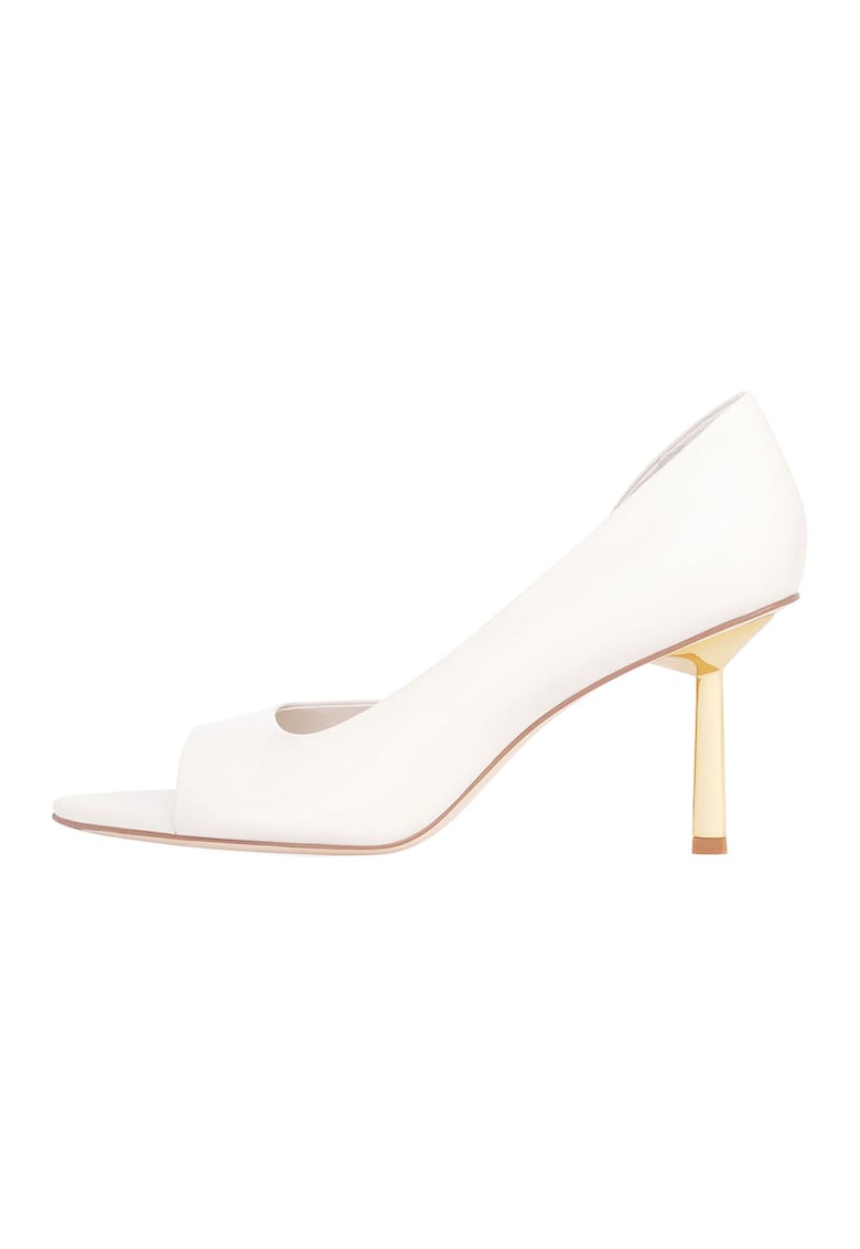 Caracteristici Tip: cu toc Culoare: alb Material: piele naturala Imprimeu: uni Stil: casual Tip toc: clasic Culoare elemente metalice: auriu Compozitie Partea superioara: piele Material interior: alte materiale Material talpa: alte materiale Dimensiuni Inaltime toc: 8 cm