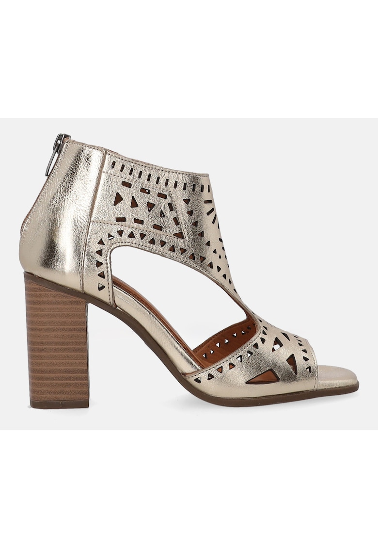 Caracteristici Tip: cu toc Culoare: auriu Material: piele naturala Stil: casual Varf: patrat Tip toc: masiv Sistem inchidere: siret Compozitie Partea superioara: piele Material interior: piele Material talpa: alte materiale Dimensiuni Inaltime toc: 9.5 cm