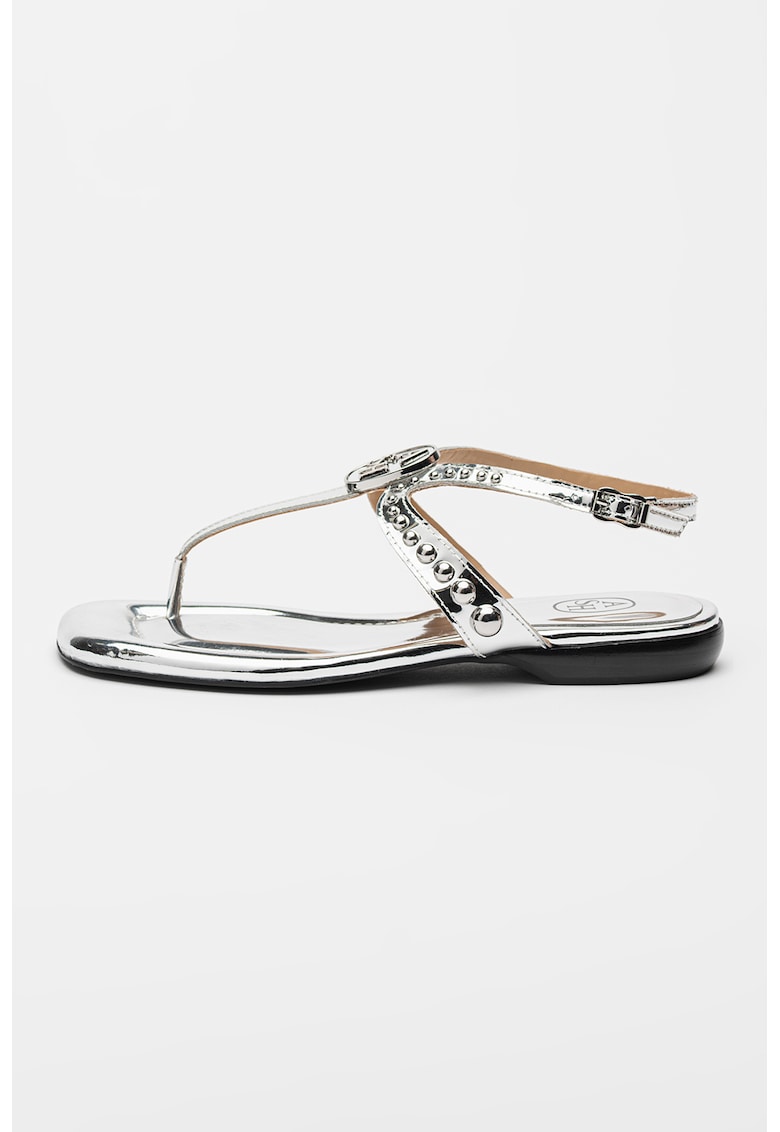 Caracteristici Tip: cu talpa joasa Culoare: argintiu Material: piele naturala Imprimeu: uni Stil: casual Varf: rotund Tip talpa: plata Culoare elemente metalice: argintiu Detalii: aspect metalizat