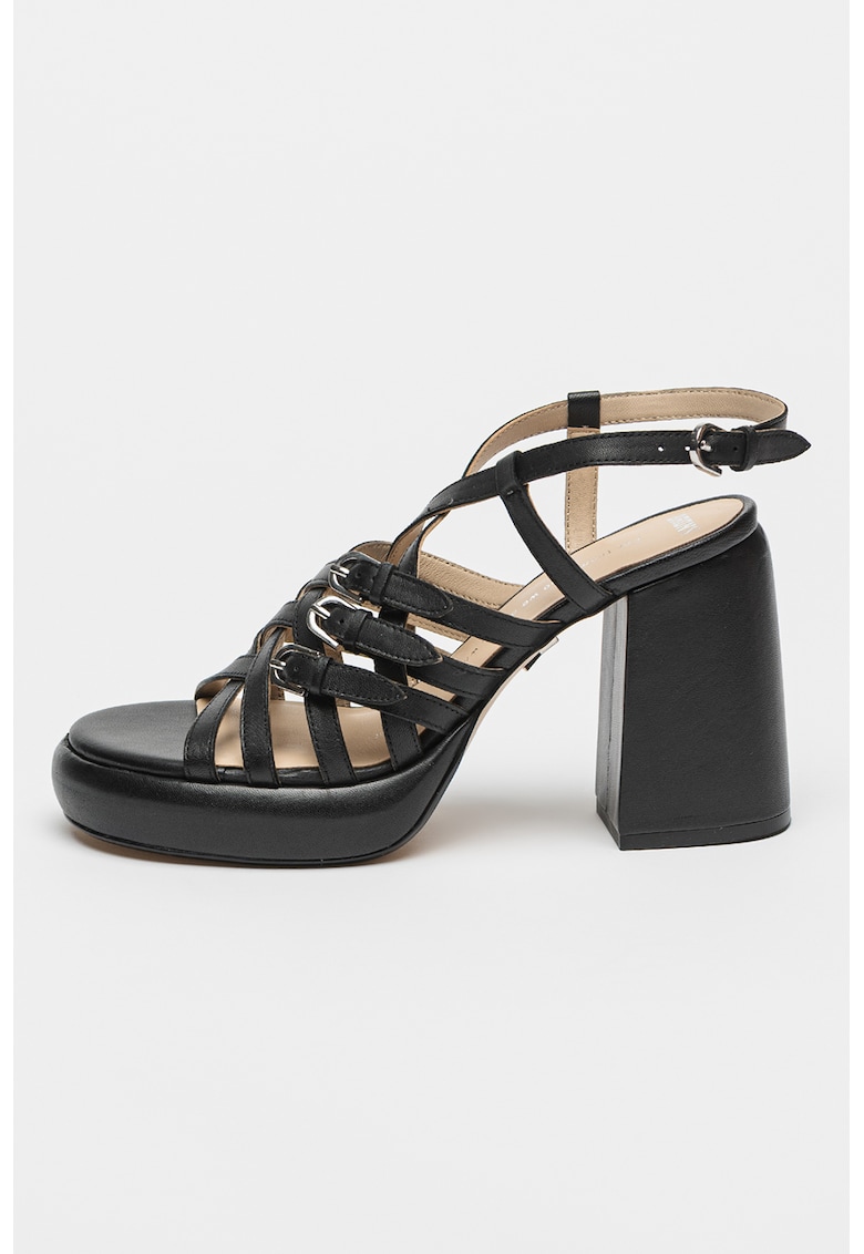 Caracteristici Tip: cu toc Culoare: negru Material: piele naturala Imprimeu: uni Stil: casual Tip toc: masiv Culoare elemente metalice: argintiu Sistem inchidere: catarama Compozitie Partea superioara: piele Material interior: piele Material talpa: alte materiale Dimensiuni Inaltime toc: 11 cm