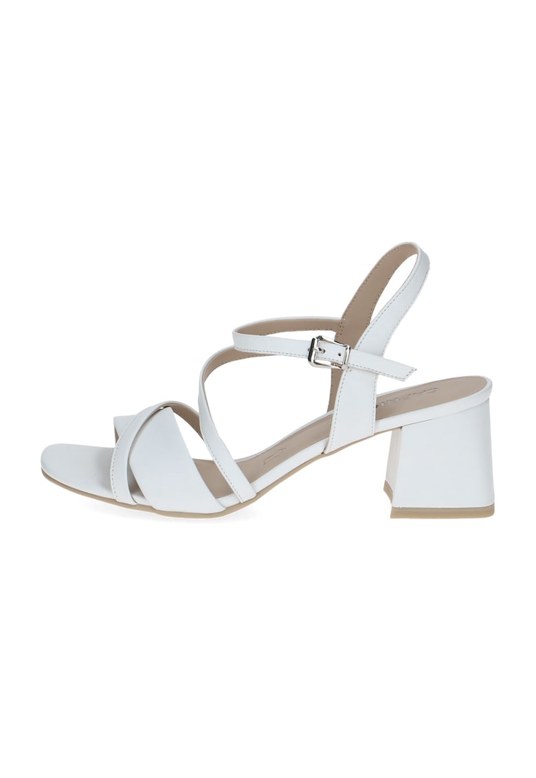 Caracteristici Tip: cu toc Culoare: alb Material: piele naturala Imprimeu: uni Stil: elegant Tip toc: masiv Culoare elemente metalice: argintiu Sistem inchidere: catarama Compozitie Partea superioara: piele Material interior: alte materiale Material talpa: alte materiale Dimensiuni Inaltime toc: 6.5 cm