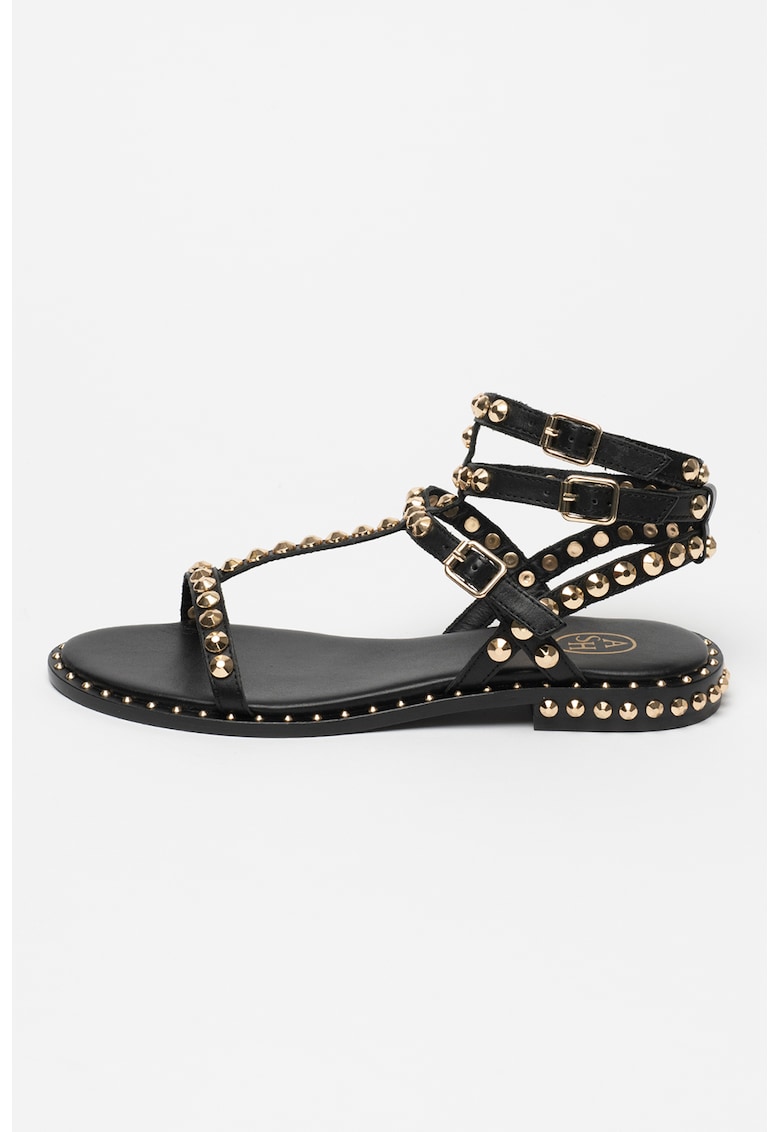 - negru Material: piele naturala Imprimeu: uni Stil: casual Varf: rotund Tip talpa: plata Culoare elemente metalice: auriu Detalii: decorate cu tinte Sistem inchidere: catarama Compozitie Partea superioara: piele Material interior: piele Material talpa: alte materiale