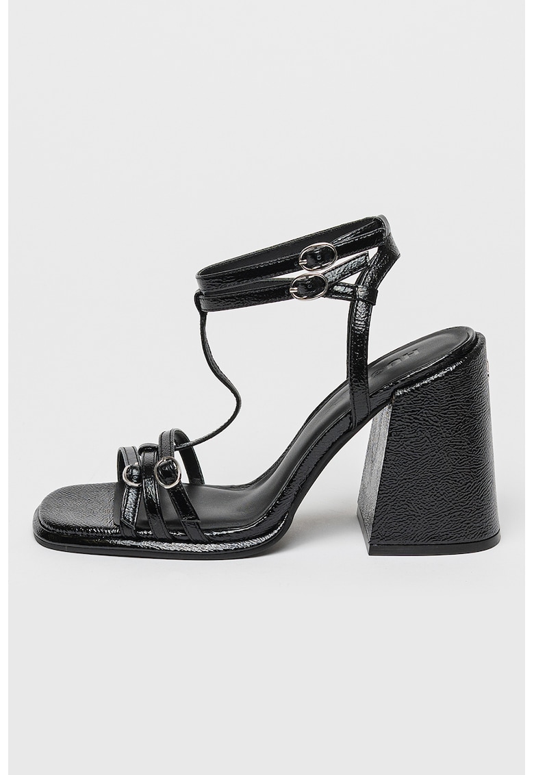 Caracteristici Tip: cu toc Culoare: negru Material: piele naturala Imprimeu: uni Stil: casual Varf: patrat Tip toc: masiv Culoare elemente metalice: argintiu Sistem inchidere: catarama Compozitie Partea superioara: piele Material interior: alte materiale