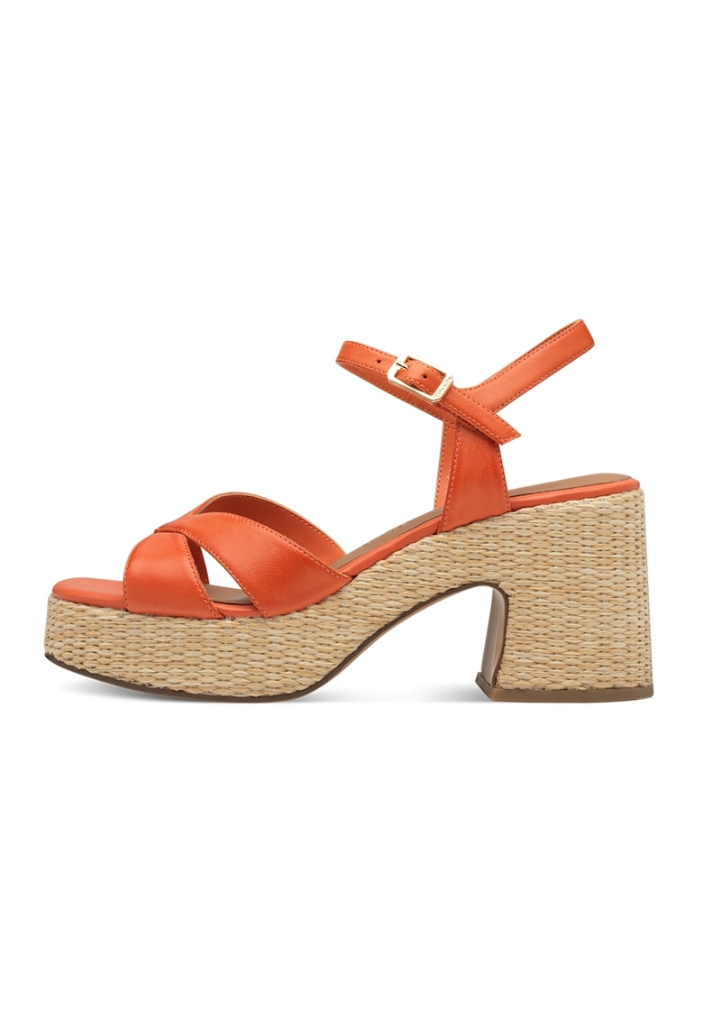 Caracteristici Tip: cu toc Culoare: portocaliu stins Material: piele naturala Imprimeu: uni Stil: casual Tip toc: masiv Culoare elemente metalice: auriu Sistem inchidere: catarama Compozitie Partea superioara: piele Material interior: alte materiale Material talpa: alte materiale Dimensiuni Inaltime toc: 8 cm