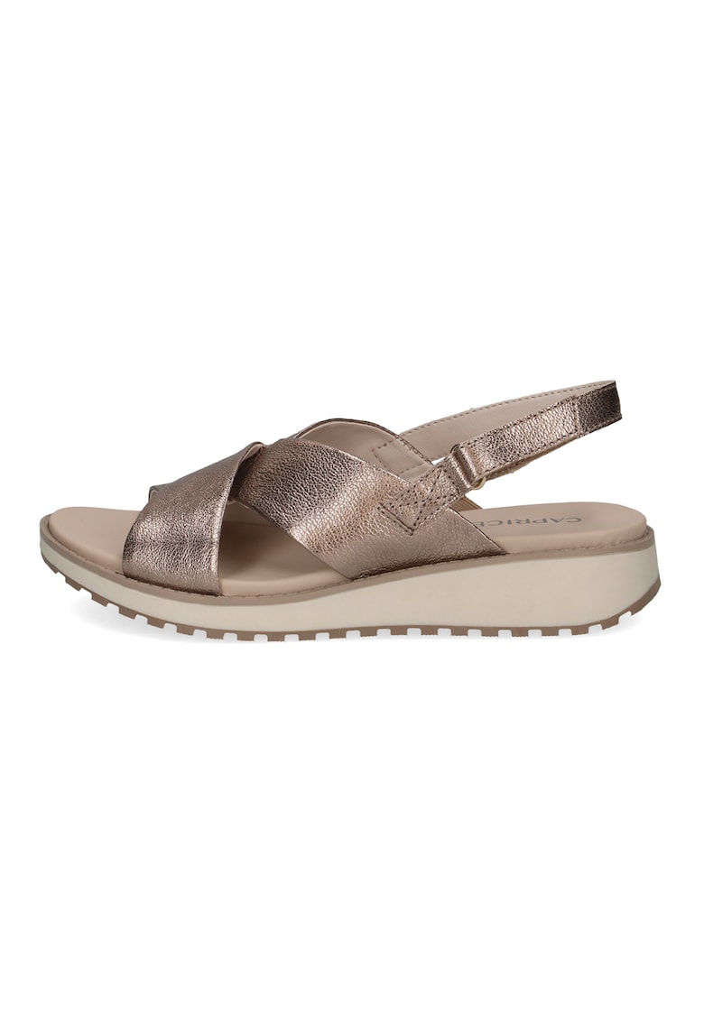 Caracteristici Tip: cu talpa joasa Culoare: auriu Material: piele naturala Imprimeu: uni Stil: casual Tip talpa: plata Culoare elemente metalice: auriu Detalii: model slingback Sistem inchidere: velcro Compozitie Partea superioara: piele Material interior: sintetic Material talpa: alte materiale
