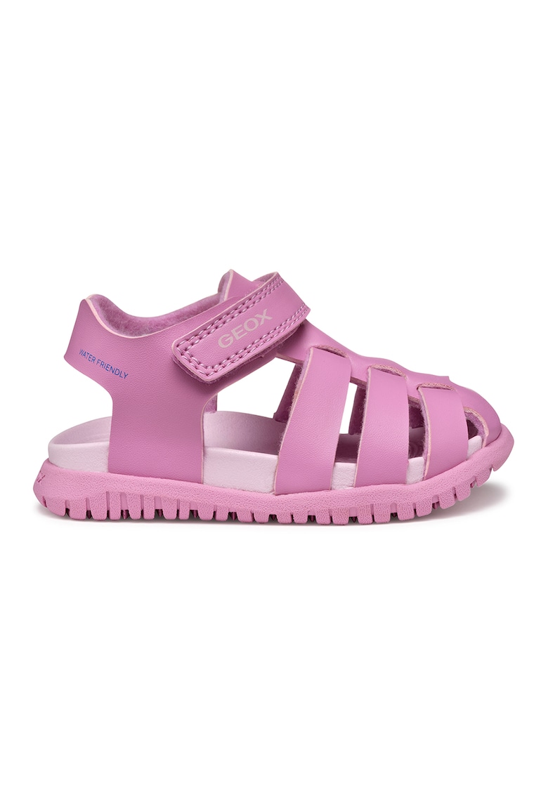 Caracteristici Culoare: roz inchis Imprimeu: uni Material: sintetic Sistem inchidere: velcro Tip talpa: plata Detalii: geox respira technology