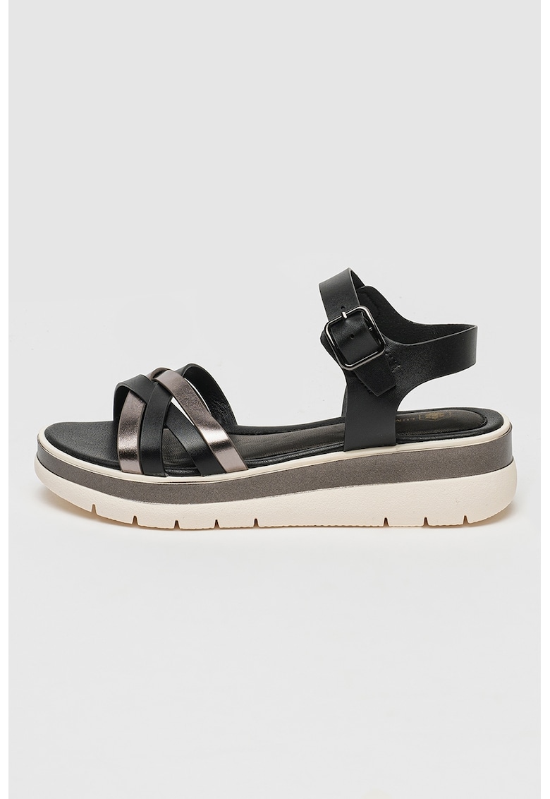 - argintiu Material: piele ecologica Imprimeu: uni Stil: casual Varf: rotund Tip talpa: wedge Culoare elemente metalice: negru Sistem inchidere: catarama Compozitie Partea superioara: material sintetic Material interior: sintetic Material talpa: alte materiale Dimensiuni Platforma spate: 5 cm