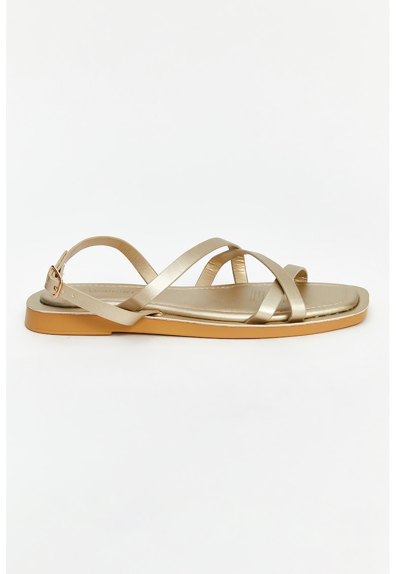 Caracteristici Tip: cu talpa joasa Culoare: auriu Material: piele ecologica Imprimeu: uni Stil: casual Tip talpa: plata Culoare elemente metalice: auriu Sistem inchidere: catarama Compozitie Partea superioara: alte materiale Material interior: alte materiale Material talpa: alte materiale