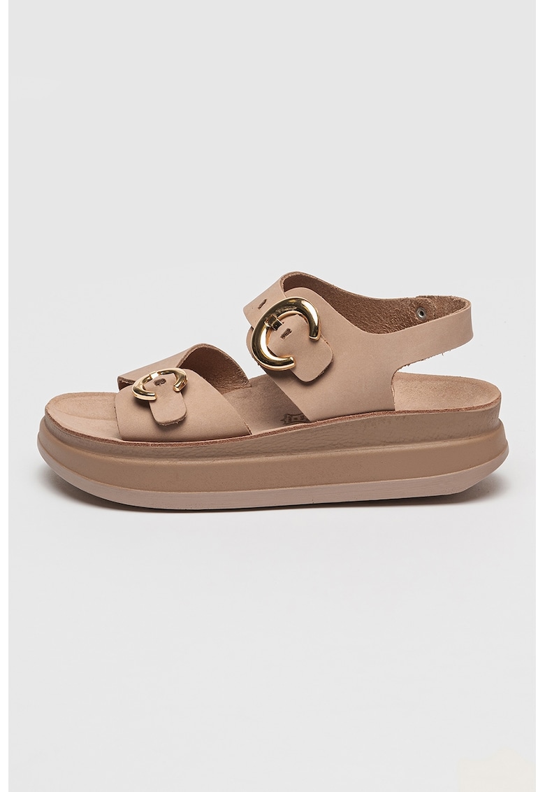 Caracteristici Tip: cu platforma Culoare: roz prafuit Material: piele naturala Imprimeu: uni Stil: casual Varf: rotund Tip talpa: flatform Culoare elemente metalice: auriu Sistem inchidere: catarama Compozitie Partea superioara: piele Material interior: piele Material talpa: alte materiale Dimensiuni Inaltime talpa: 5 cm