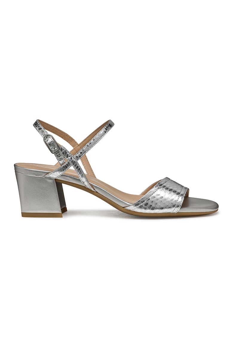 Caracteristici Tip: cu toc Culoare: argintiu Material: piele naturala Imprimeu: uni Stil: casual Tip toc: masiv Tehnologie: geox respira® Culoare elemente metalice: argintiu Sistem inchidere: catarama Compozitie Partea superioara: piele Material interior: piele Material talpa: alte materiale