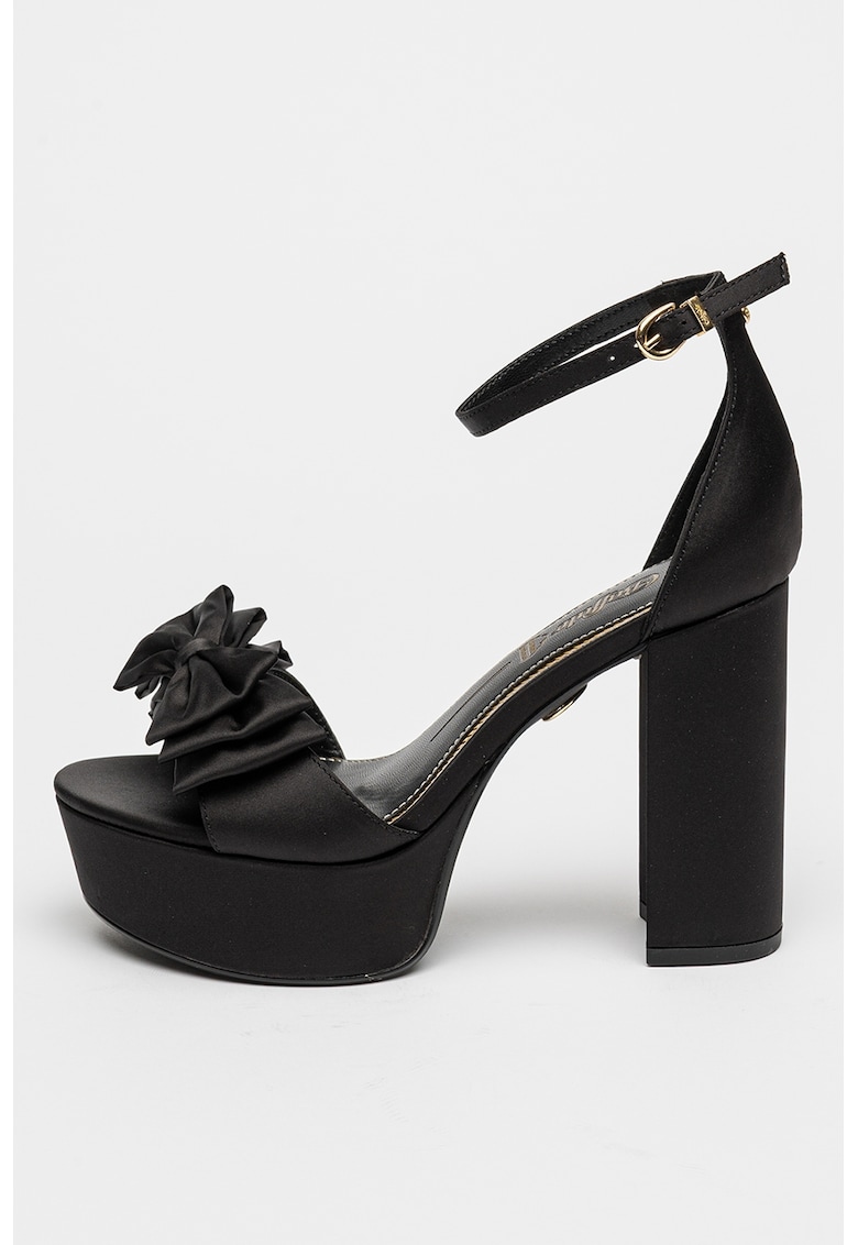 Caracteristici Tip: cu toc Culoare: negru Material: textil Stil: casual Varf: rotund Tip toc: masiv Culoare elemente metalice: auriu Sistem inchidere: catarama Compozitie Partea superioara: textil Material interior: alte materiale Material talpa: alte materiale Dimensiuni Inaltime toc: 11.5 cm