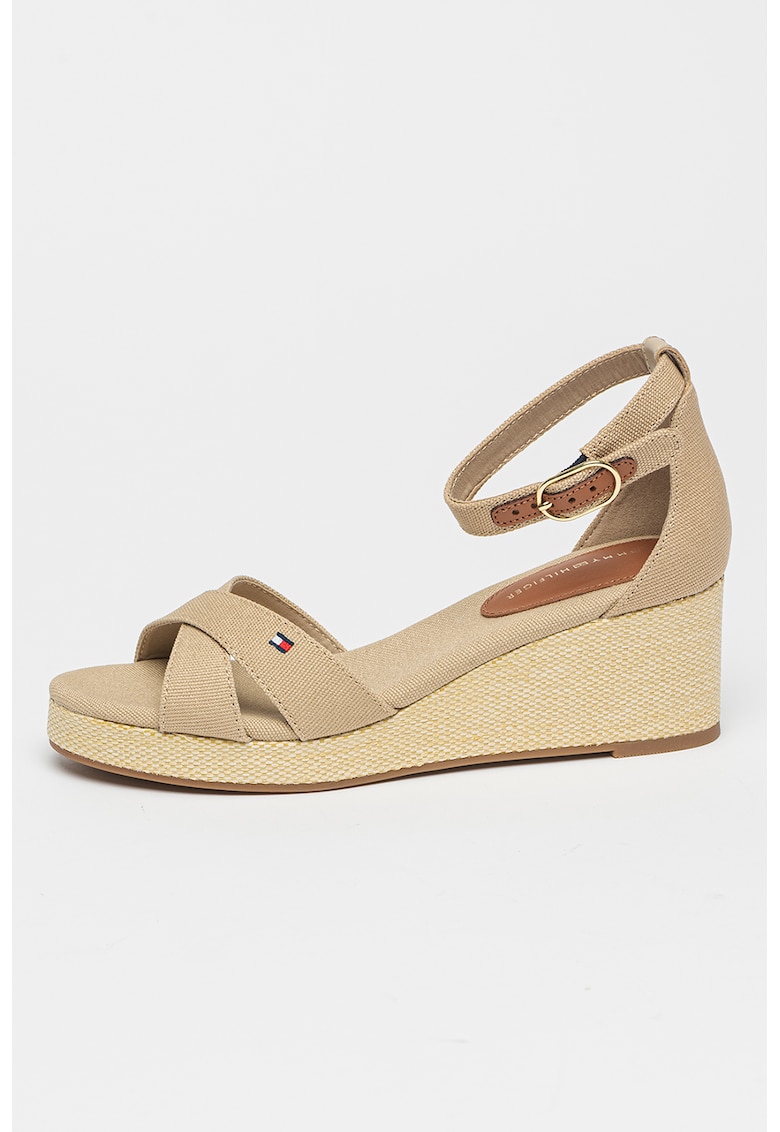 Caracteristici Tip: cu platforma Culoare: camel Material: textil Imprimeu: uni Stil: casual Varf: rotund Tip talpa: wedge Culoare elemente metalice: auriu Sistem inchidere: catarama Compozitie Partea superioara: material textil Material interior: alte materiale