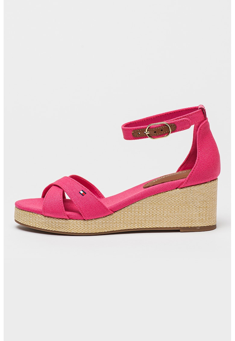 Caracteristici Tip: cu platforma Culoare: fucsia Material: textil Imprimeu: uni Stil: casual Varf: rotund Tip talpa: wedge Culoare elemente metalice: auriu Sistem inchidere: catarama Compozitie Partea superioara: material textil Material interior: alte materiale