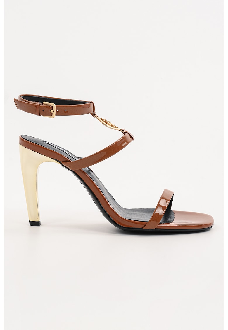 - logo Stil: casual Varf: patrat Tip toc: stiletto Culoare elemente metalice: auriu Detalii: bareta ajustabila pe glezna Sistem inchidere: catarama Compozitie Partea superioara: piele lacuita Material interior: piele