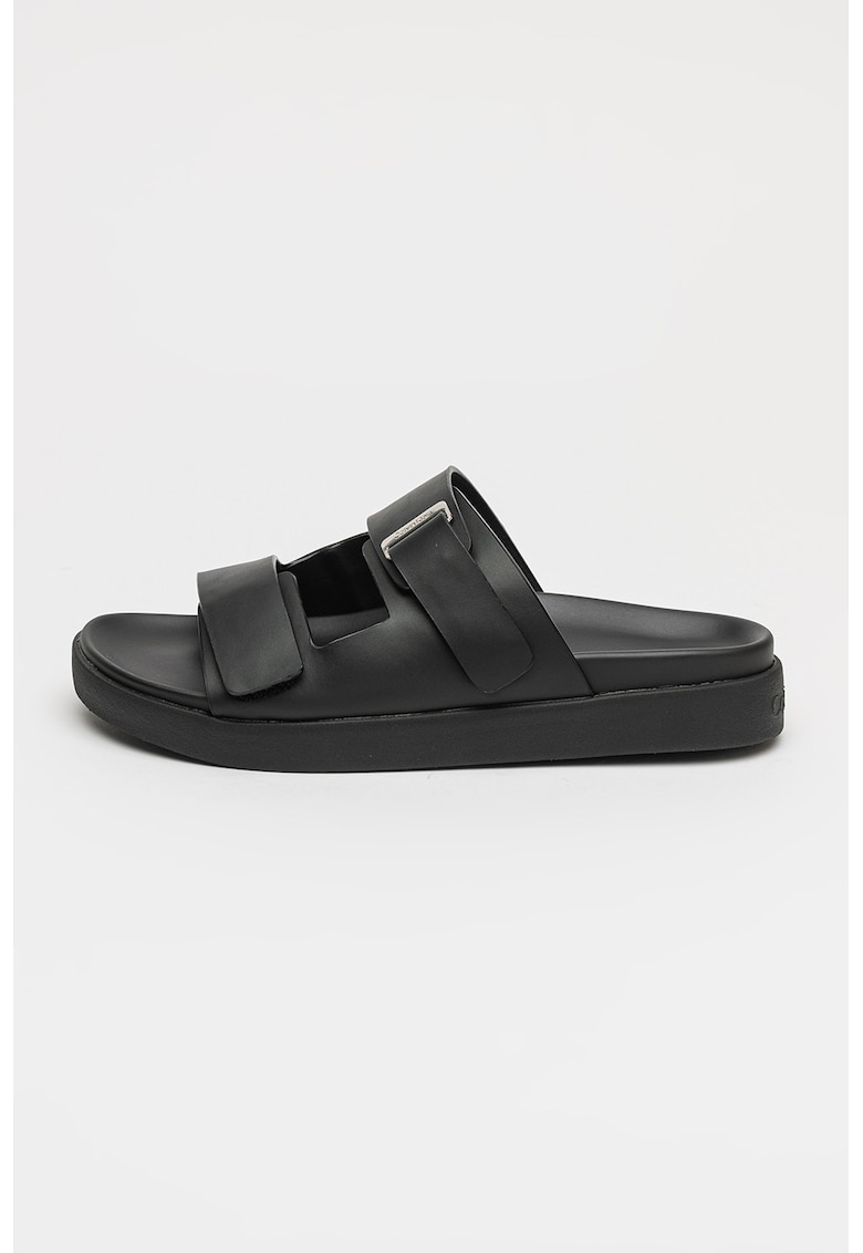 Caracteristici Tip produs: papuci Culoare: negru Material: piele naturala Stil: casual Imprimeu: uni Varf: rotund Tip talpa: plata Detalii: benzi velcro Compozitie Partea superioara: piele Material interior: alte materiale Material talpa: alte materiale