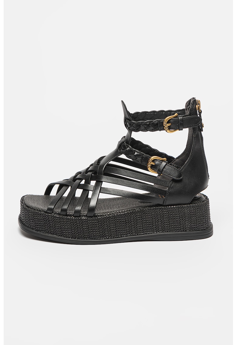 Caracteristici Tip: cu talpa joasa Culoare: negru Material: piele naturala Imprimeu: uni Stil: casual Tip talpa: plata Culoare elemente metalice: auriu Detalii: aspect impletit