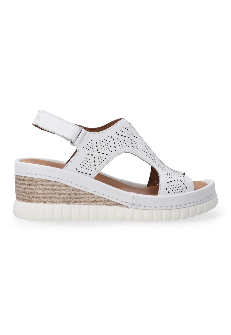 Caracteristici Tip: cu platforma Culoare: alb Material: piele naturala Stil: casual Varf: rotund Tip talpa: wedge Detalii: perforatii decorative Sistem inchidere: velcro Compozitie Partea superioara: piele Material interior: piele Material talpa: alte materiale Dimensiuni Platforma fata: 2.5 cm Platforma spate: 6.5 cm