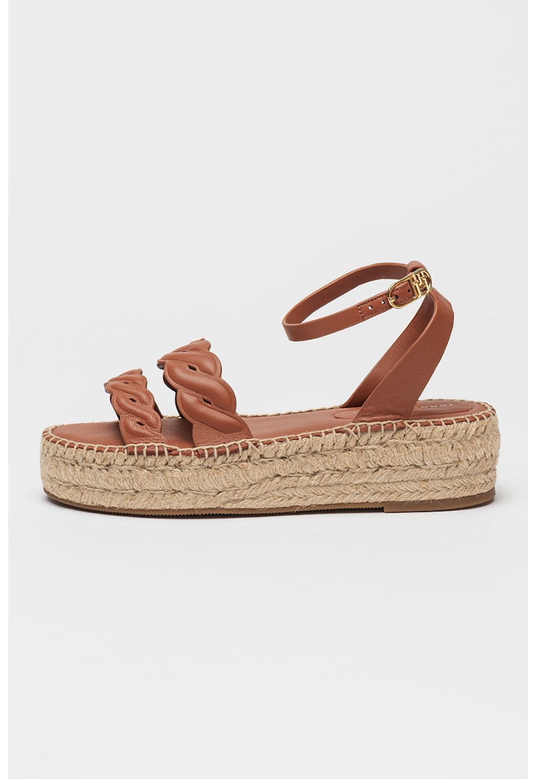 Caracteristici Tip: cu platforma Culoare: maro scortisoara Material: piele naturala Imprimeu: uni Stil: casual Varf: rotund Tip talpa: wedge Culoare elemente metalice: auriu Sistem inchidere: catarama Compozitie Partea superioara: piele Material interior: piele Material talpa: alte materiale Dimensiuni Platforma spate: 5.5 cm
