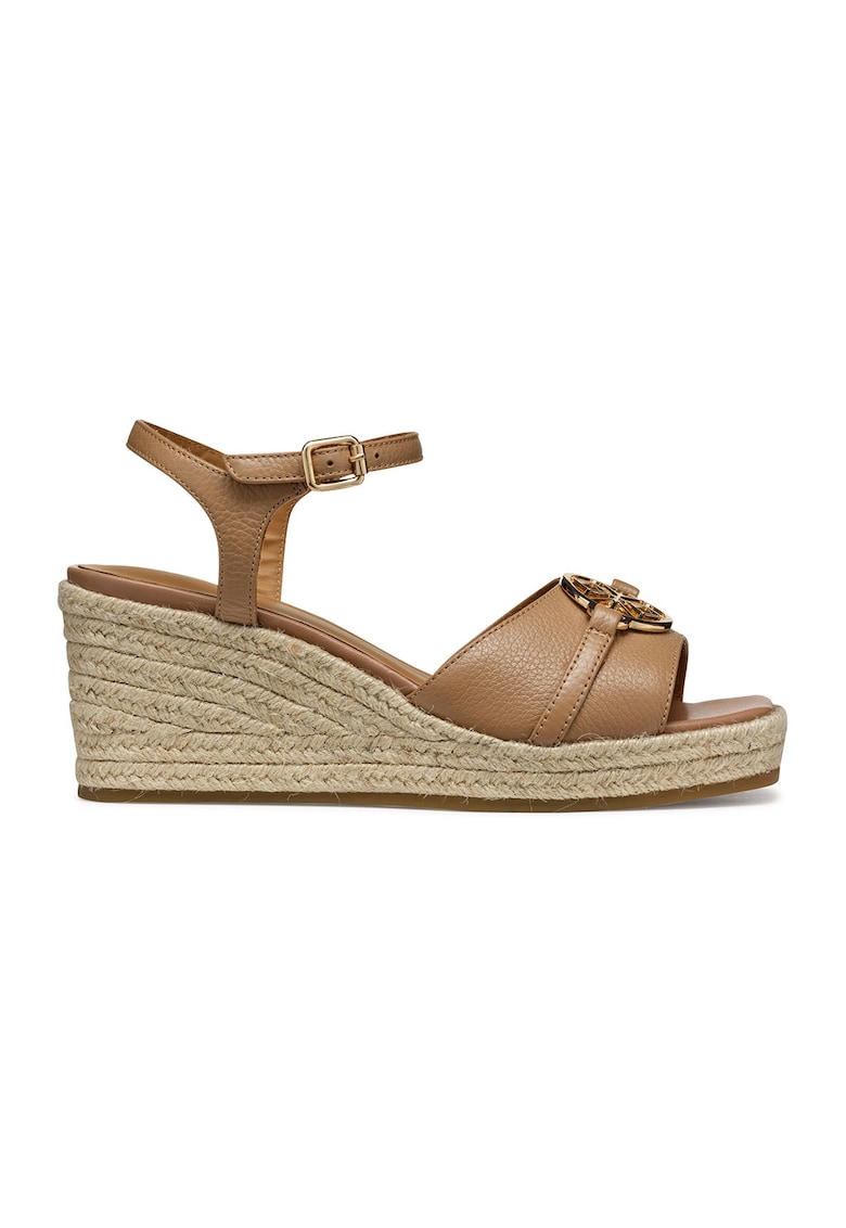 Caracteristici Tip: cu platforma Culoare: bej inchis Material: piele naturala Imprimeu: uni Stil: casual Tip talpa: wedge Tehnologie: geox respira® Culoare elemente metalice: auriu Sistem inchidere: catarama Compozitie Partea superioara: piele Material interior: piele Material talpa: alte materiale Dimensiuni Platforma spate: 7.5 cm