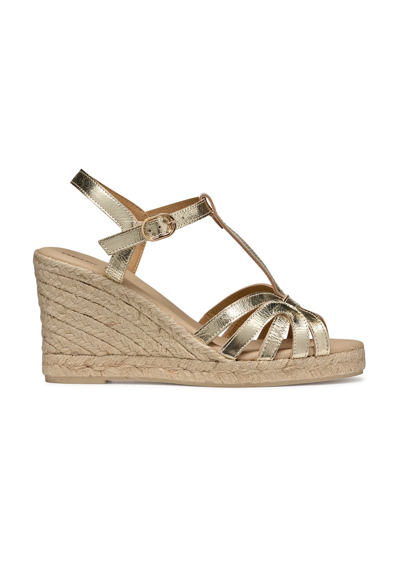Caracteristici Tip: cu toc Culoare: auriu Material: piele naturala Imprimeu: uni Stil: casual Varf: ascutit Tip talpa: wedge Culoare elemente metalice: auriu Sistem inchidere: catarama Compozitie Partea superioara: piele Material interior: sintetic Material talpa: alte materiale Dimensiuni Inaltime talpa: 7.5 cm