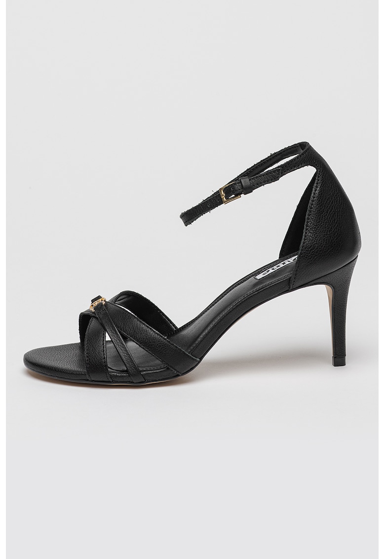 Caracteristici Tip: cu toc Culoare: negru Material: piele naturala Imprimeu: uni Stil: casual Tip toc: stiletto Culoare elemente metalice: auriu Sistem inchidere: catarama Compozitie Partea superioara: piele Material interior: alte materiale Material talpa: alte materiale Dimensiuni Inaltime toc: 8.5 cm
