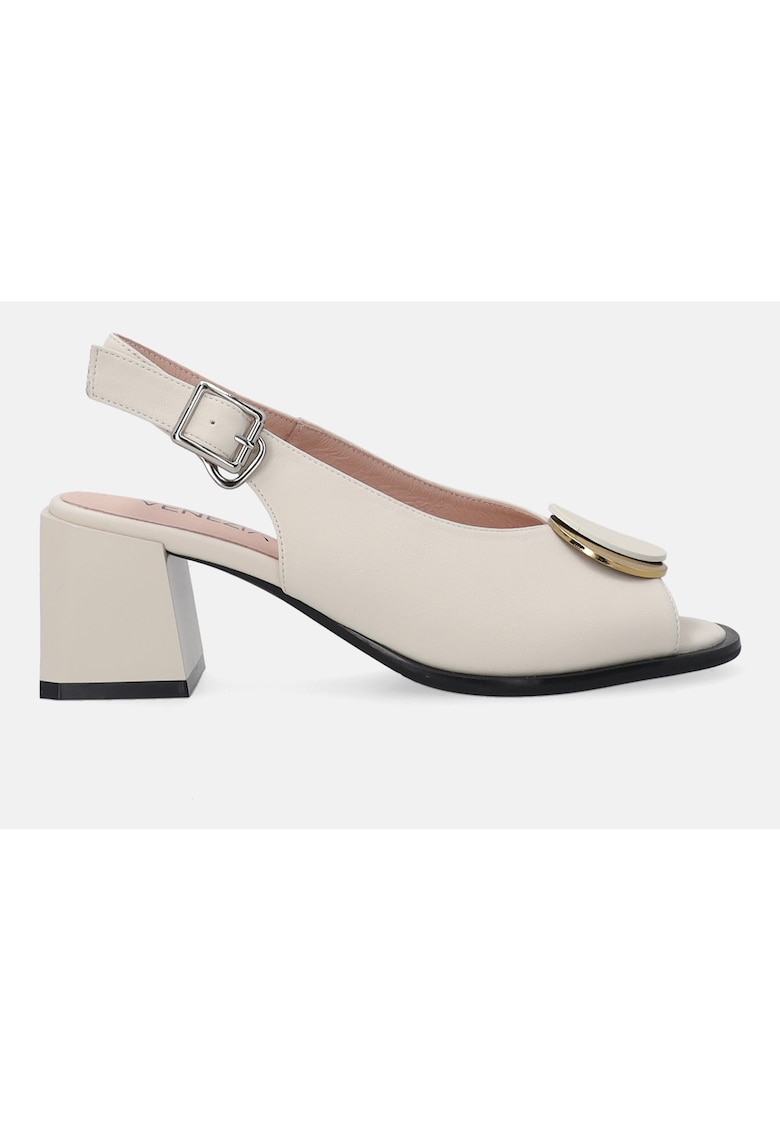 Caracteristici Tip: cu toc Culoare: bej Material: piele naturala Stil: casual Varf: rotund Tip toc: masiv Culoare elemente metalice: argintiu Sistem inchidere: catarama Compozitie Partea superioara: piele Material interior: piele Material talpa: 100% sintetic Dimensiuni Inaltime toc: 6 cm