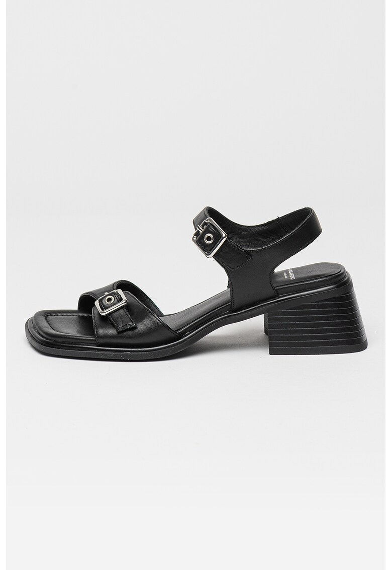 Caracteristici Tip: cu toc Culoare: negru Material: piele naturala Imprimeu: uni Stil: casual Varf: patrat Tip toc: masiv Culoare elemente metalice: argintiu Sistem inchidere: catarama Compozitie Partea superioara: piele Material interior: piele Material talpa: alte materiale Dimensiuni Inaltime toc: 5 cm