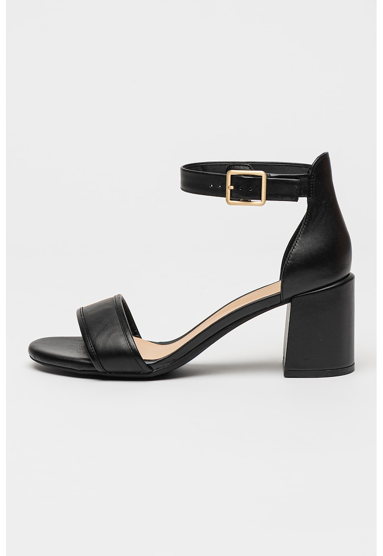 Caracteristici Tip: cu toc Culoare: negru Material: piele naturala Imprimeu: uni Stil: casual Varf: rotund Tip toc: masiv Culoare elemente metalice: auriu Sistem inchidere: catarama Compozitie Partea superioara: piele Material interior: piele Material talpa: alte materiale Dimensiuni Inaltime toc: 7 cm