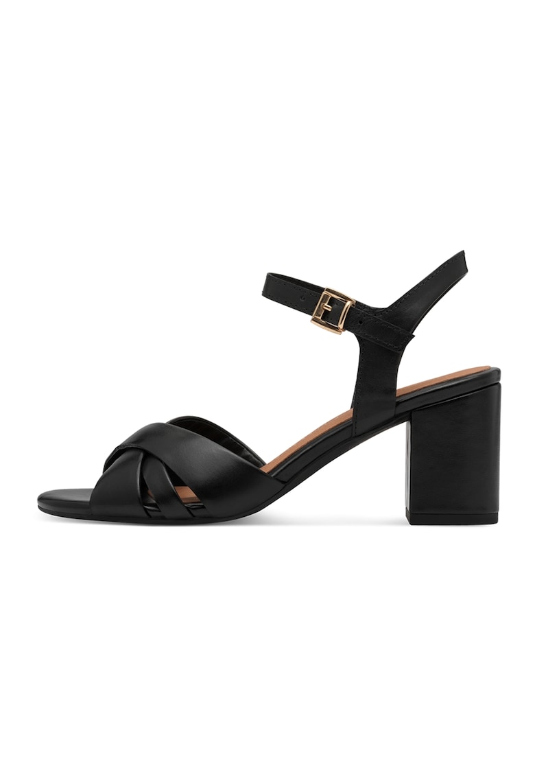 Caracteristici Tip: cu toc Culoare: negru Material: piele naturala Imprimeu: uni Stil: casual Tip toc: masiv Culoare elemente metalice: auriu Sistem inchidere: catarama Compozitie Partea superioara: piele Material interior: piele Material talpa: alte materiale Dimensiuni Inaltime toc: 6.5 cm