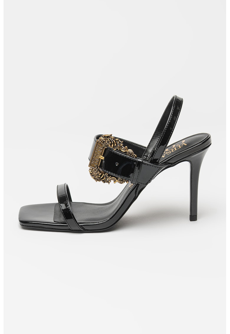 Caracteristici Tip: cu toc Culoare: negru Material: piele ecologica Imprimeu: uni Stil: elegant Varf: patrat Tip toc: stiletto Culoare elemente metalice: auriu Detalii: aspect lacuit