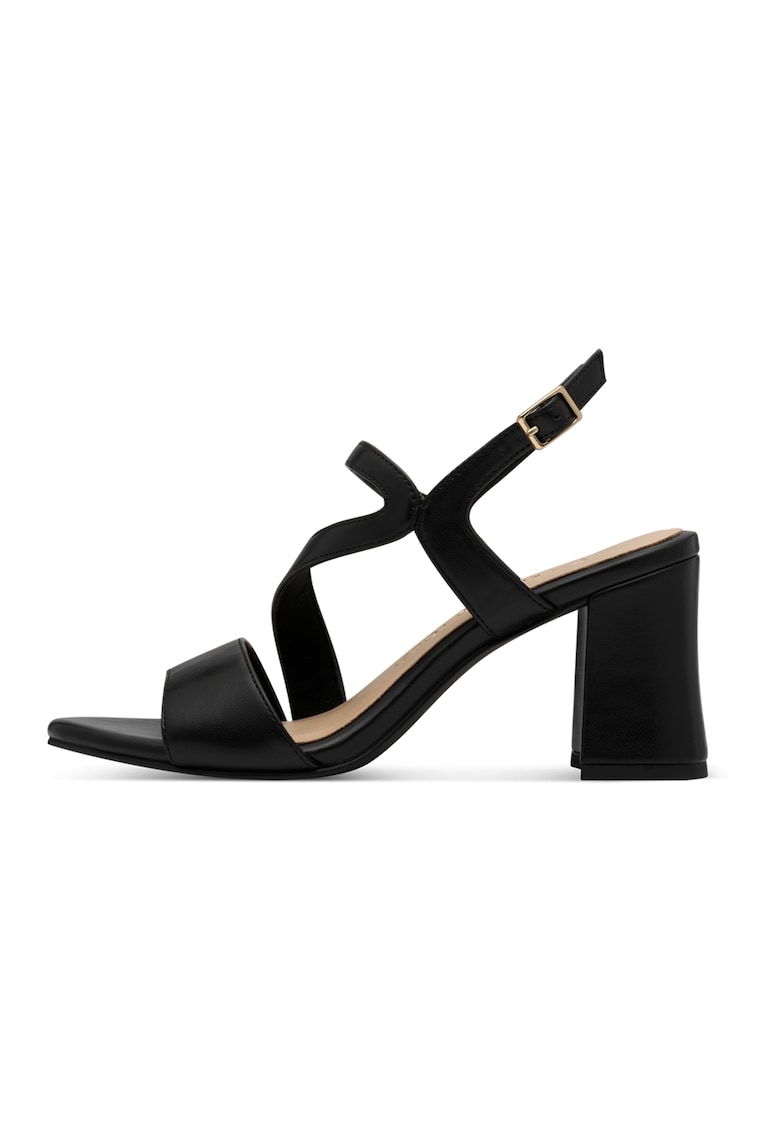 Caracteristici Tip: cu toc Culoare: negru Material: piele ecologica Imprimeu: uni Stil: casual Tip toc: masiv Culoare elemente metalice: auriu Sistem inchidere: catarama Compozitie Partea superioara: piele Material interior: textil Material talpa: alte materiale Dimensiuni Inaltime toc: 7.5 cm