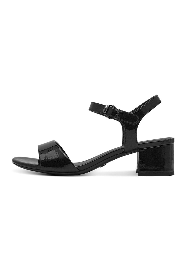 Caracteristici Tip: cu toc Culoare: negru Material: piele ecologica Imprimeu: uni Stil: elegant Varf: rotund Tip toc: masiv Culoare elemente metalice: auriu Sistem inchidere: catarama Compozitie Partea superioara: alte materiale Material interior: textil