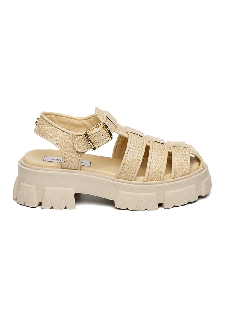 Caracteristici Tip: cu toc Culoare: bej deschis Material: piele ecologica Imprimeu: uni Stil: casual Varf: rotund Tip toc: masiv Culoare elemente metalice: auriu Sistem inchidere: catarama Compozitie Partea superioara: material sintetic Material interior: sintetic Material talpa: alte materiale Dimensiuni Inaltime toc: 5 cm Platforma fata: 3 cm