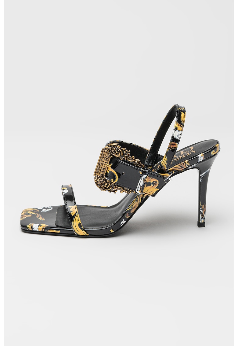 - galben Material: piele ecologica Imprimeu: cu model Stil: elegant Varf: patrat Culoare elemente metalice: auriu Detalii: catarama supradimensionata Sistem inchidere: catarama Compozitie Partea superioara: material sintetic Material interior: sintetic Material talpa: alte materiale Dimensiuni Inaltime toc: 10 cm