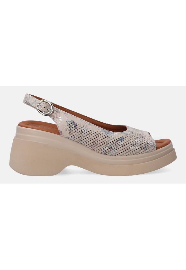 - accente metalizate Sistem inchidere: catarama Compozitie Partea superioara: piele nabuc Material interior: piele Material talpa: alte materiale Dimensiuni Platforma fata: 3 cm Platforma spate: 7 cm
