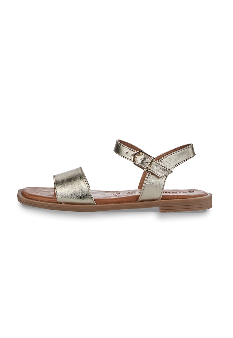 Caracteristici Tip: cu talpa joasa Culoare: auriu Material: piele naturala Imprimeu: uni Stil: casual Varf: patrat Tip talpa: demi-wedge Culoare elemente metalice: auriu Detalii: aspect metalic Sistem inchidere: catarama Compozitie Partea superioara: piele Material interior: piele Material talpa: alte materiale