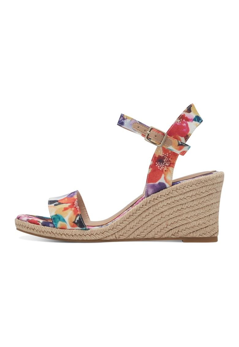 - bej Material: textil Imprimeu: cu model Stil: casual Tip talpa: wedge Sistem inchidere: catarama Compozitie Partea superioara: textil Material interior: textil Material talpa: alte materiale Dimensiuni Platforma spate: 7.5 cm