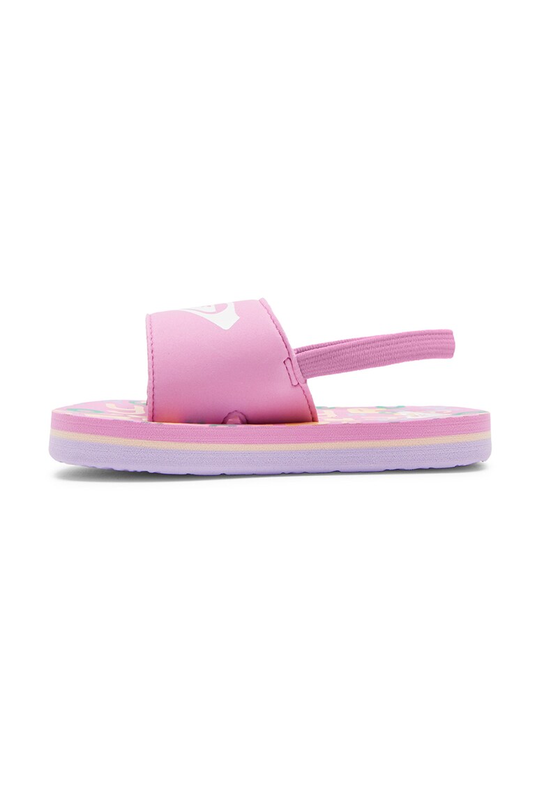 Caracteristici Culoare: lila Imprimeu: logo Material: sintetic Sistem inchidere: velcro Tip talpa: plata Detalii: bareta elastica pe partea din spate Compozitie Partea superioara: textil