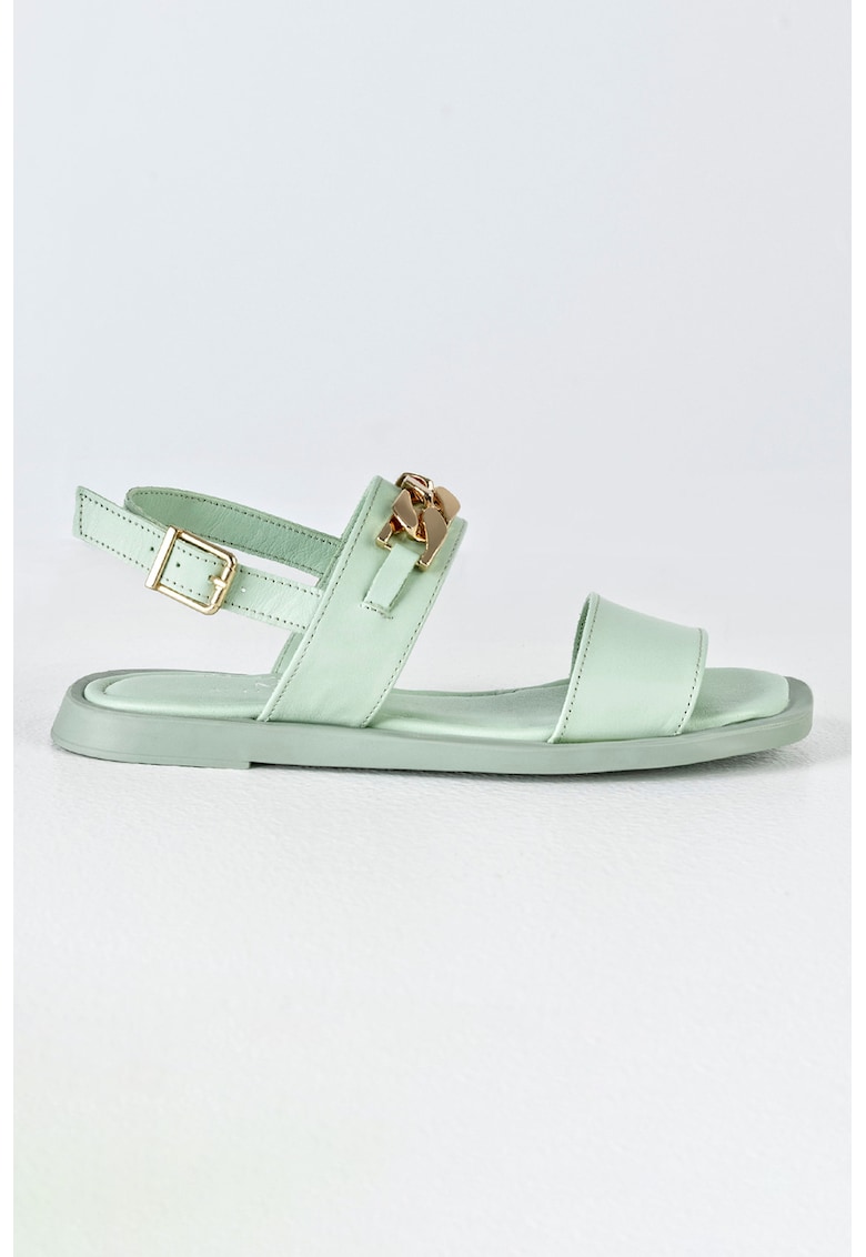 Caracteristici Tip: cu talpa joasa Culoare: verde pal Material: piele naturala Stil: casual Tip talpa: plata Culoare elemente metalice: auriu Detalii: bareta slingback Sistem inchidere: catarama Compozitie Partea superioara: piele Material interior: piele Material talpa: alte materiale