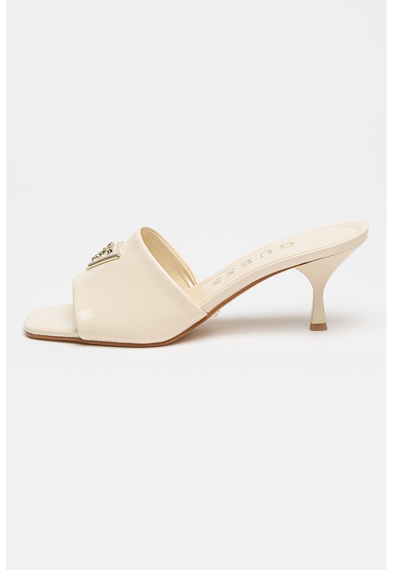 Caracteristici Tip produs: papuci Culoare: bej deschis Material: sintetic Stil: casual Imprimeu: logo Varf: patrat Tip toc: kitten Detalii: aspect lacuit Compozitie Partea superioara: alte materiale Material interior: alte materiale Material talpa: alte materiale Dimensiuni Inaltime toc: 6 cm