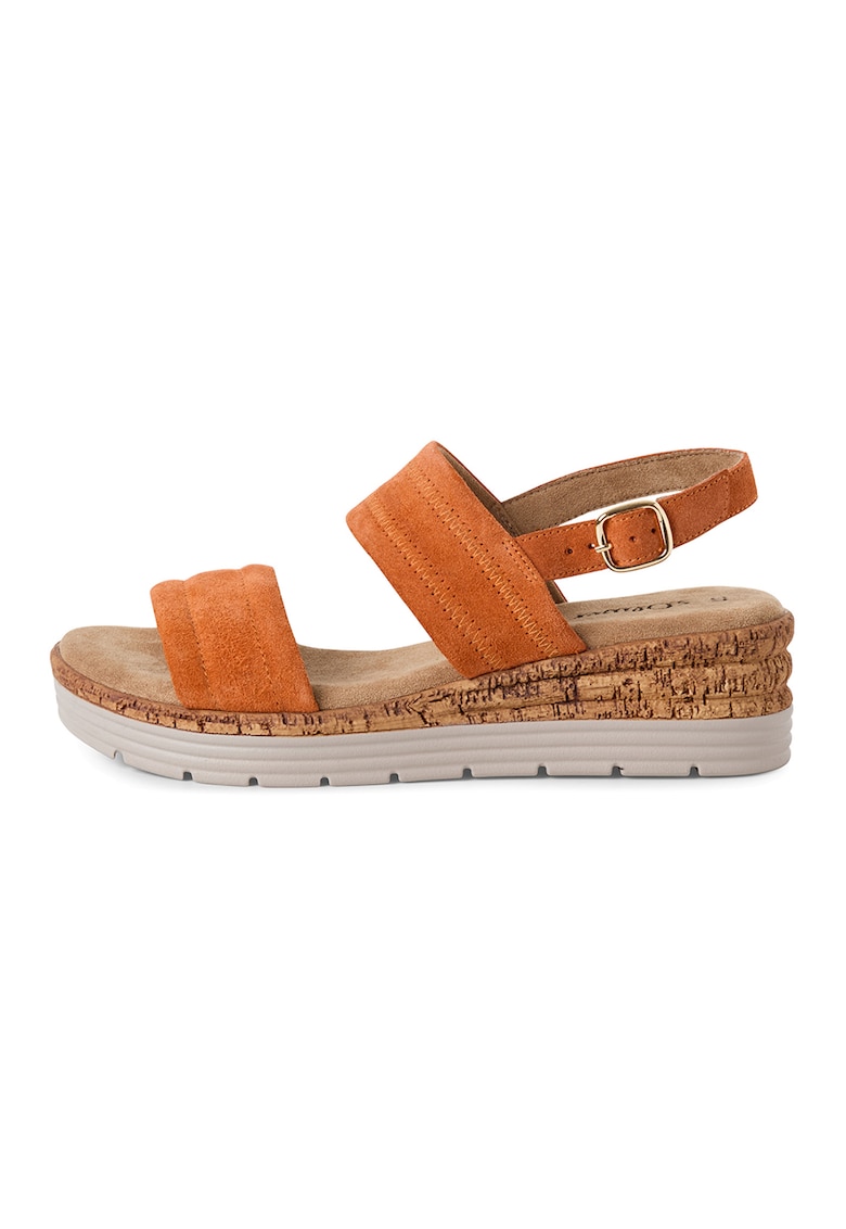 Caracteristici Tip: cu platforma Culoare: portocaliu stins Material: piele naturala Imprimeu: uni Stil: casual Varf: rotund Tip talpa: wedge Culoare elemente metalice: auriu Sistem inchidere: catarama Compozitie Partea superioara: piele Material interior: textil