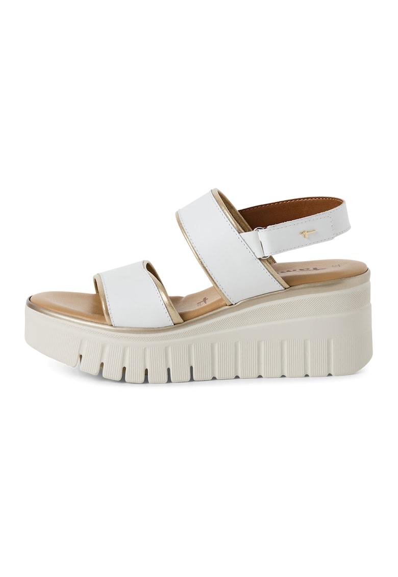 - piele naturala Imprimeu: uni Stil: casual Varf: rotund Tip talpa: wedge Tehnologie: touch it Culoare elemente metalice: auriu Detalii: bareta slingback ajustabila Sistem inchidere: velcro Compozitie Partea superioara: piele