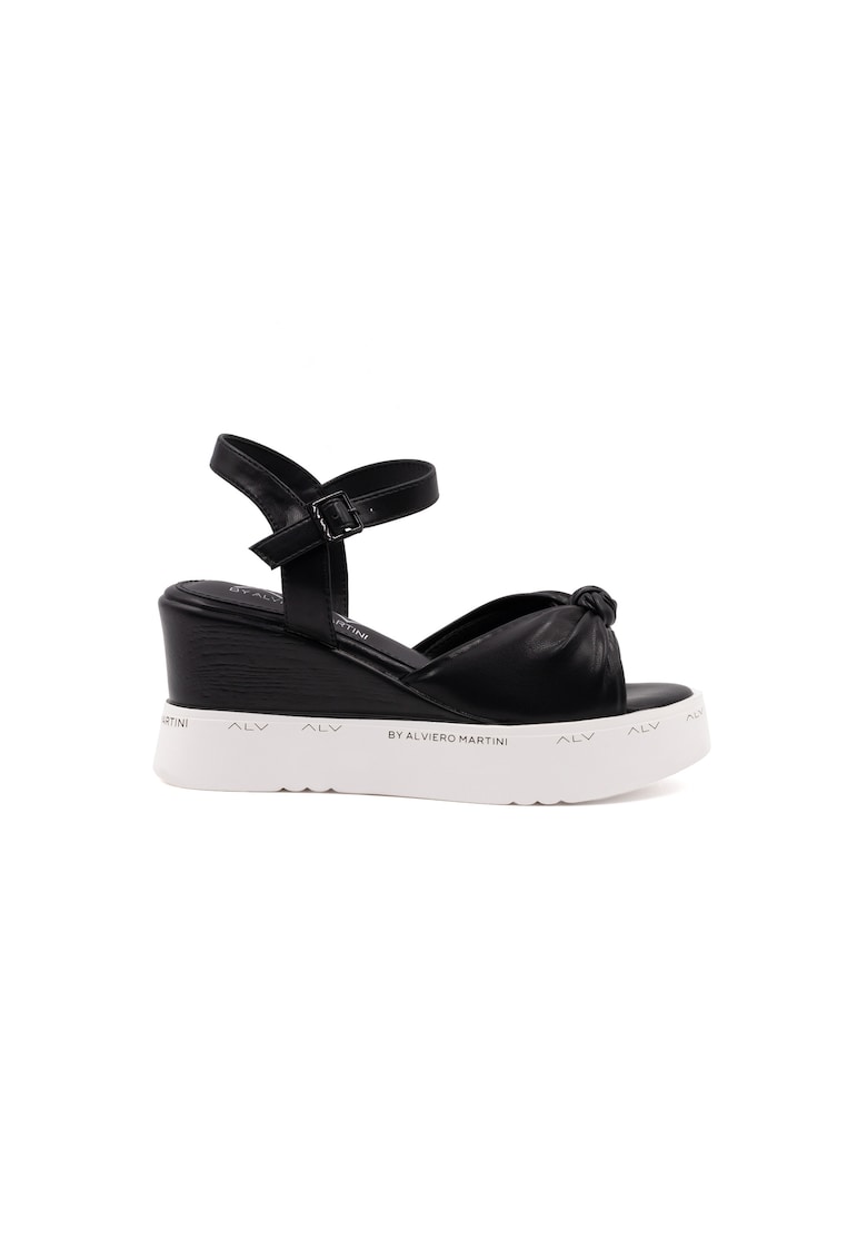 Caracteristici Tip: cu platforma Culoare: negru Material: piele ecologica Stil: casual Tip talpa: wedge Sistem inchidere: catarama Compozitie Partea superioara: alte materiale Material interior: alte materiale Material talpa: alte materiale Dimensiuni Platforma spate: 9 cm