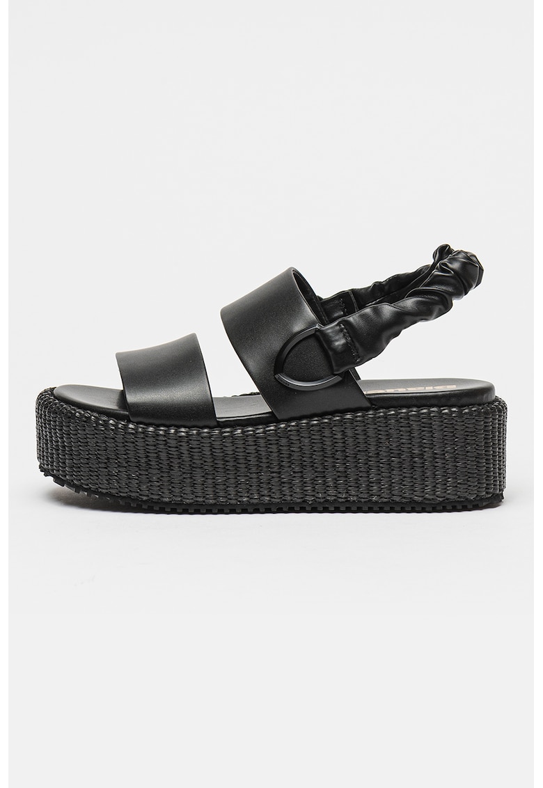 Caracteristici Tip: cu platforma Culoare: negru Material: piele ecologica Imprimeu: uni Stil: casual Varf: rotund Tip talpa: wedge Culoare elemente metalice: negru Detalii: bareta slingback Sistem inchidere: fara inchidere Compozitie Partea superioara: alte materiale Material interior: alte materiale Material talpa: alte materiale Dimensiuni Platforma spate: 6.5 cm