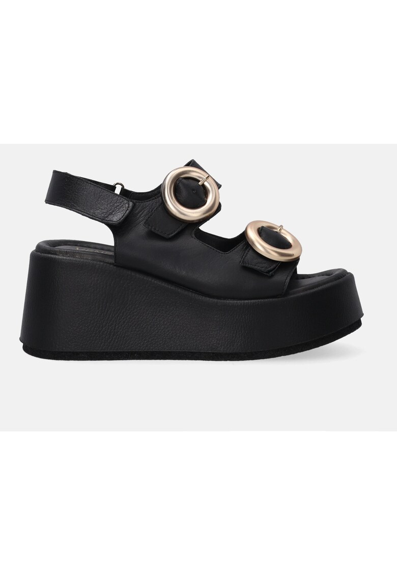 Caracteristici Tip: cu platforma Culoare: negru Material: piele naturala Imprimeu: uni Stil: casual Varf: rotund Tip talpa: wedge Culoare elemente metalice: auriu Sistem inchidere: velcro Compozitie Partea superioara: piele Material interior: piele Material talpa: alte materiale Dimensiuni Platforma fata: 4 cm Platforma spate: 7.5 cm